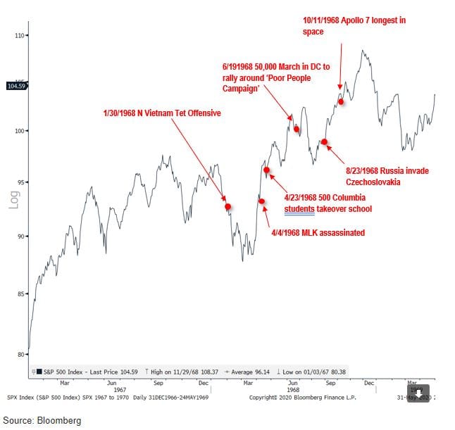 A deadly global pandemic that kills 100,000 Americans, mass protests across the country against racial inequality, and a rising stock market. While that might sound like 2020, I'm actually talking about 1968.