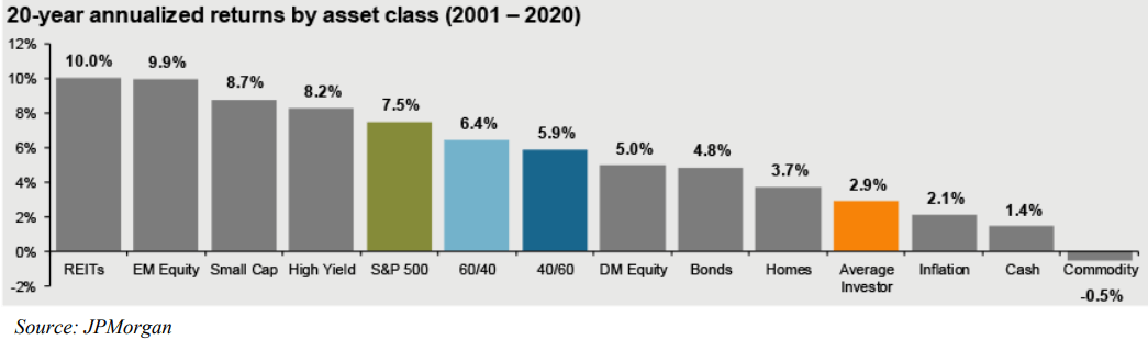 Losing money is psychologically taxing, which is why downside protection tends to be of more concern to investors than participating in upside gains. This helps explain why the average investor has seen annualized returns of only 2.9% since 2001, while the S&P 500 returned 7.5%.